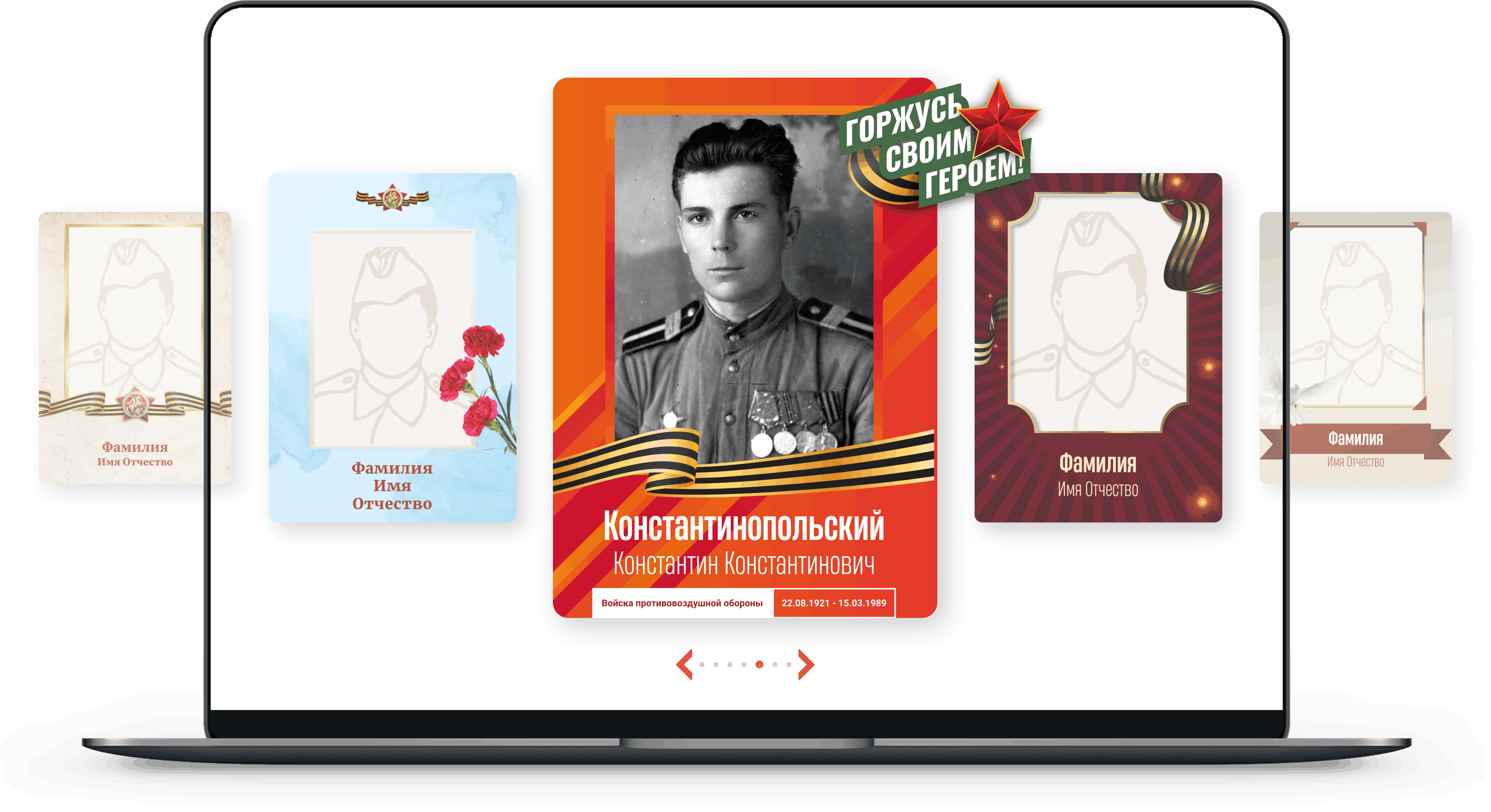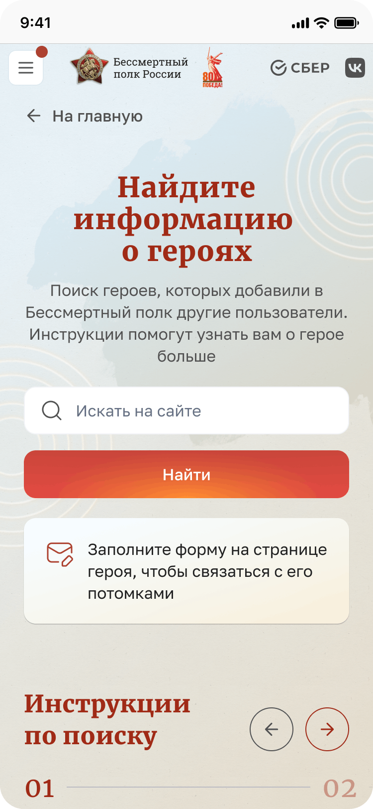 Для визуального образа платформы мы разработали концепт «Светлая память», наполненный теплом, уважением и бережным отношением к подвигу поколений.